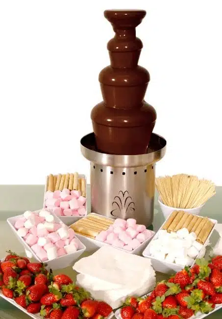 First, we tailor the size of the fountain to the number of guests at your party. Remember our chocolate fountain motto, ONE SIZE DOES NOT FIT ALL. Also, other companies require you to use their attendant and charge you a premium for this service. We do not feel this is necessary! Chocolate fountains are VERY easy to operate. We will personally walk you through operating the fountain, leave you printed instructions, and we are always on call if you need assistance.