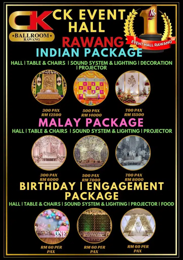 Welcome to CK Event Management, your premier choice for event spaces in Rawang. Whether you need an elegant wedding hall in Rawang, or a versatile event hall in Rawang, we have you covered.